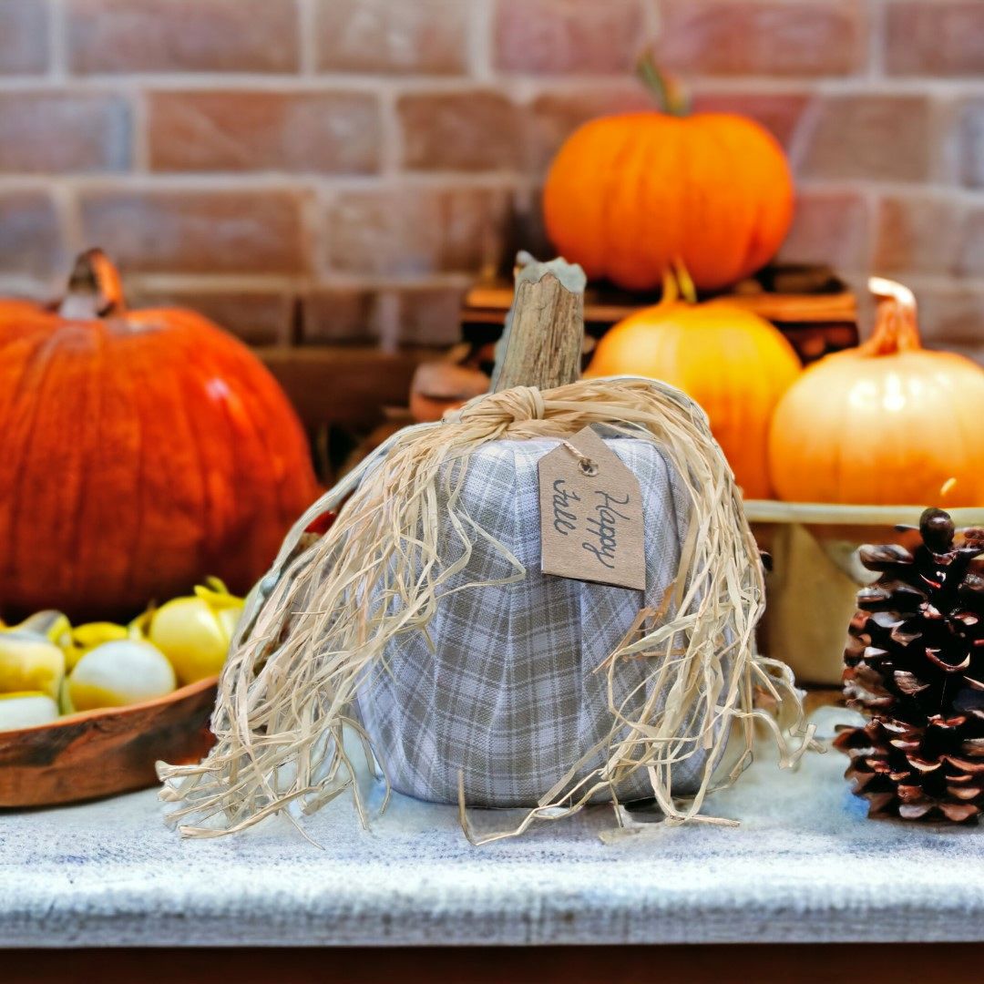 Perfect for creating a warm, Halloween home décor atmosphere, these pumpkins blend seamlessly with your fall decorations. Choose from three cozy plaid color options to complement your fall home decorations. Crafted with care in America, these fall pumpkin décor items are intended for indoor enjoyment.