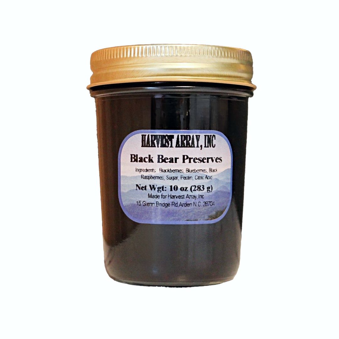 Blue Ridge Black Bear Preserves are made from local, fresh grown, berries in the mountains of Western North Carolina. This amazingly delicious combination of blackberries, blueberries, and black raspberries is made in small batches to maintain the delicious taste of the berries.