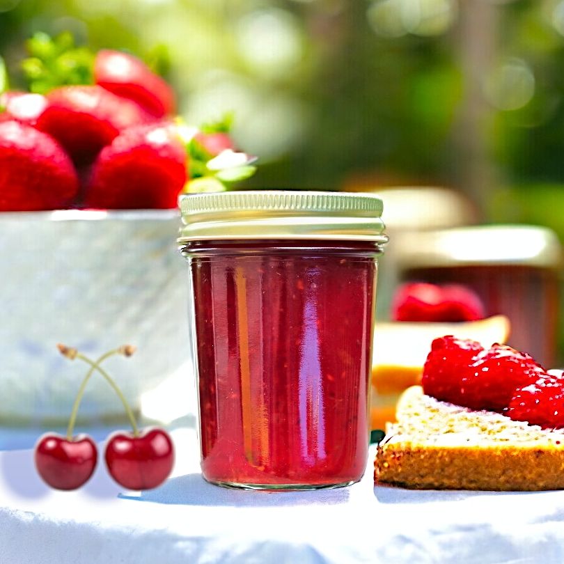 - Ingredients: Strawberries, Raspberries, Sugar, Pectin, Cherries, Citric Acid