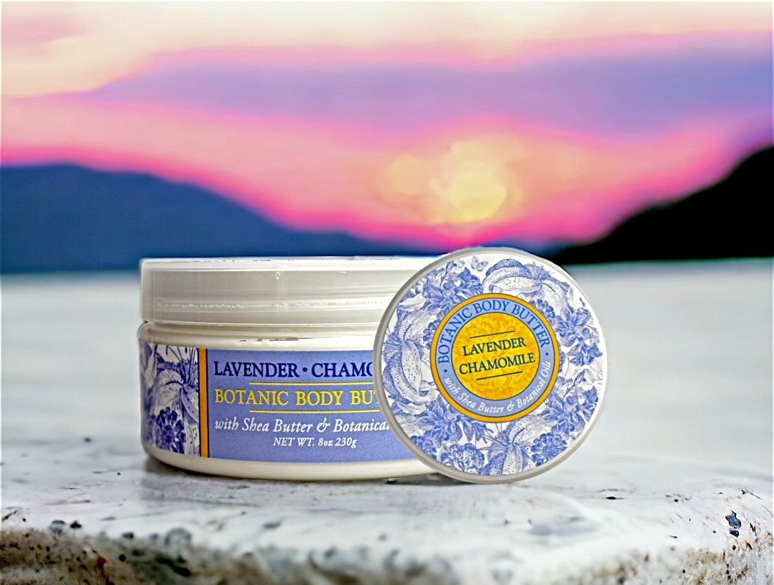 These moisturizing Body Butters are available in three fragrant Botanical Scents. Each 8 ounce jar contains vitamin E, shea and cocoa butters and luxurious botanical oils. Our Body Butter is perfect for winter months. It helps lock in moisture and repair skin.