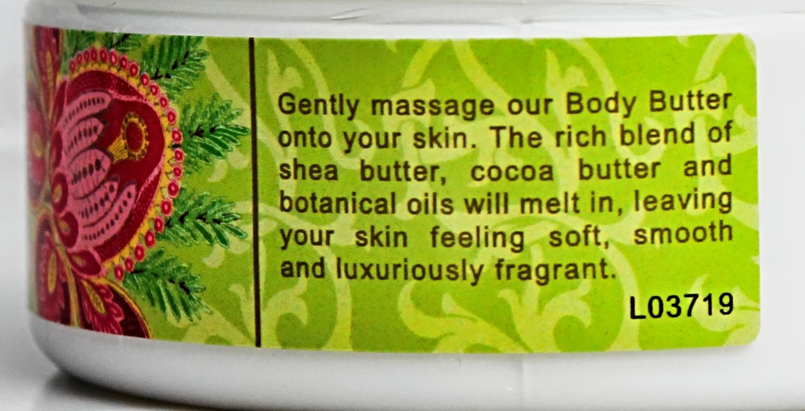 - Rich Body Butter with vitamin E is enriched with shea butter, cocoa butter, and botanical oils.