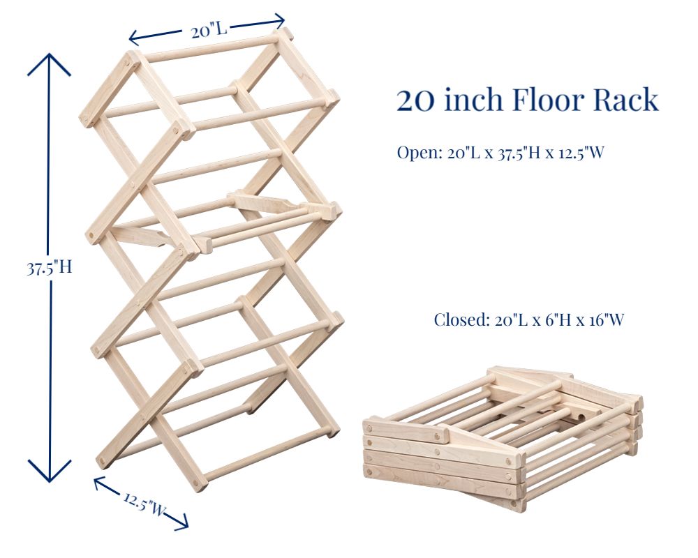 The timeless design and sturdy construction make this 20 inch long, 37.5 inch high laundry drying rack a reliable and long-lasting addition to your home and laundry room. When folded, it is only 6 inches high, therefore, it can be easily stored when not in use, saving valuable floor space.