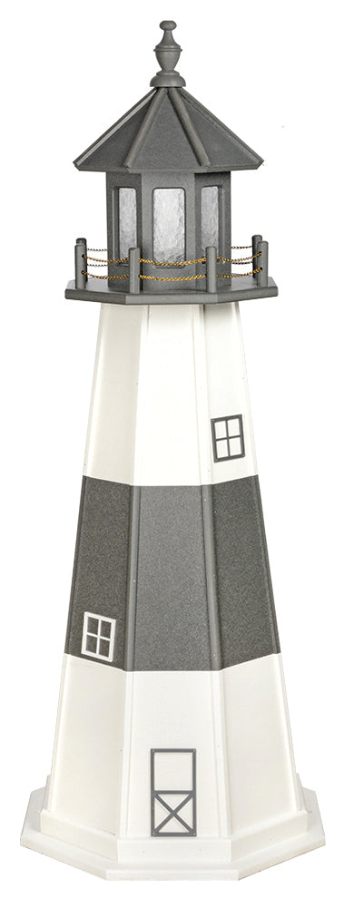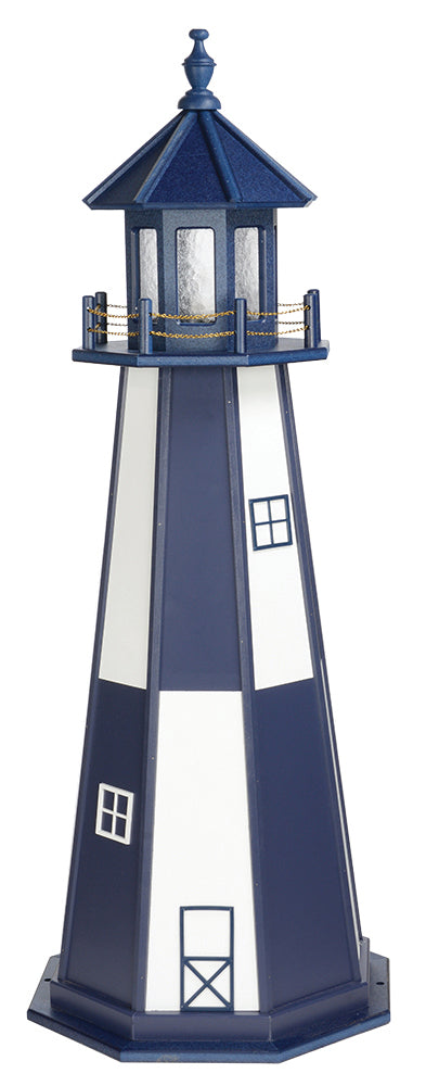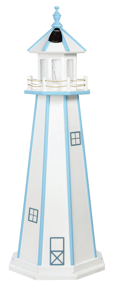 - Each lighthouse is approximately 5 feet high and comes standard with a 25-watt bulb, standard socket, and an 8’ cord.