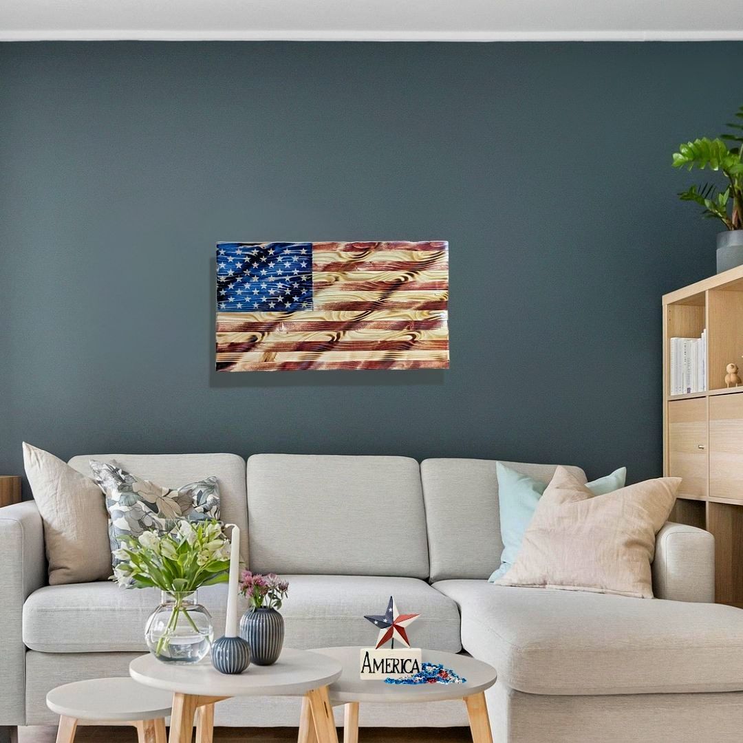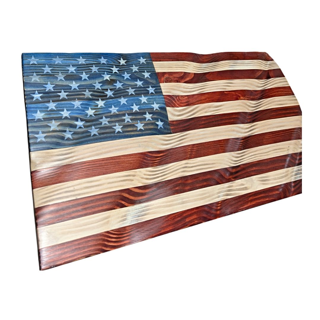Celebrate the heart and soul of America with this awe-inspiring Hand-Carved Wavy American Flag—a true work of art that embodies freedom, unity, and unwavering pride. Skillfully crafted by master artisans, each flag is meticulously sculpted to create a breathtaking wavy effect, evoking the image of Old Glory rippling in the wind.