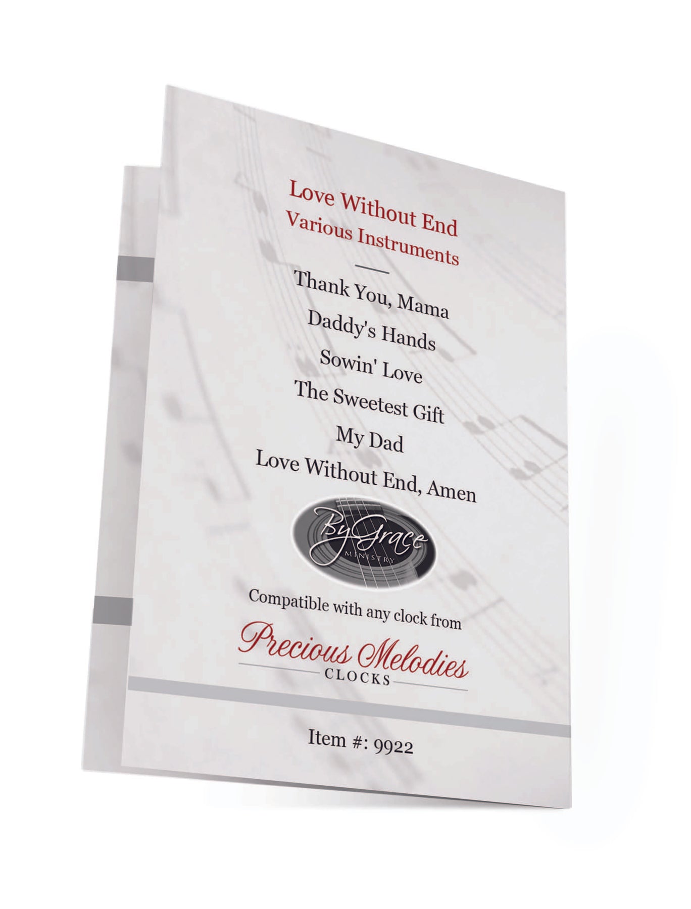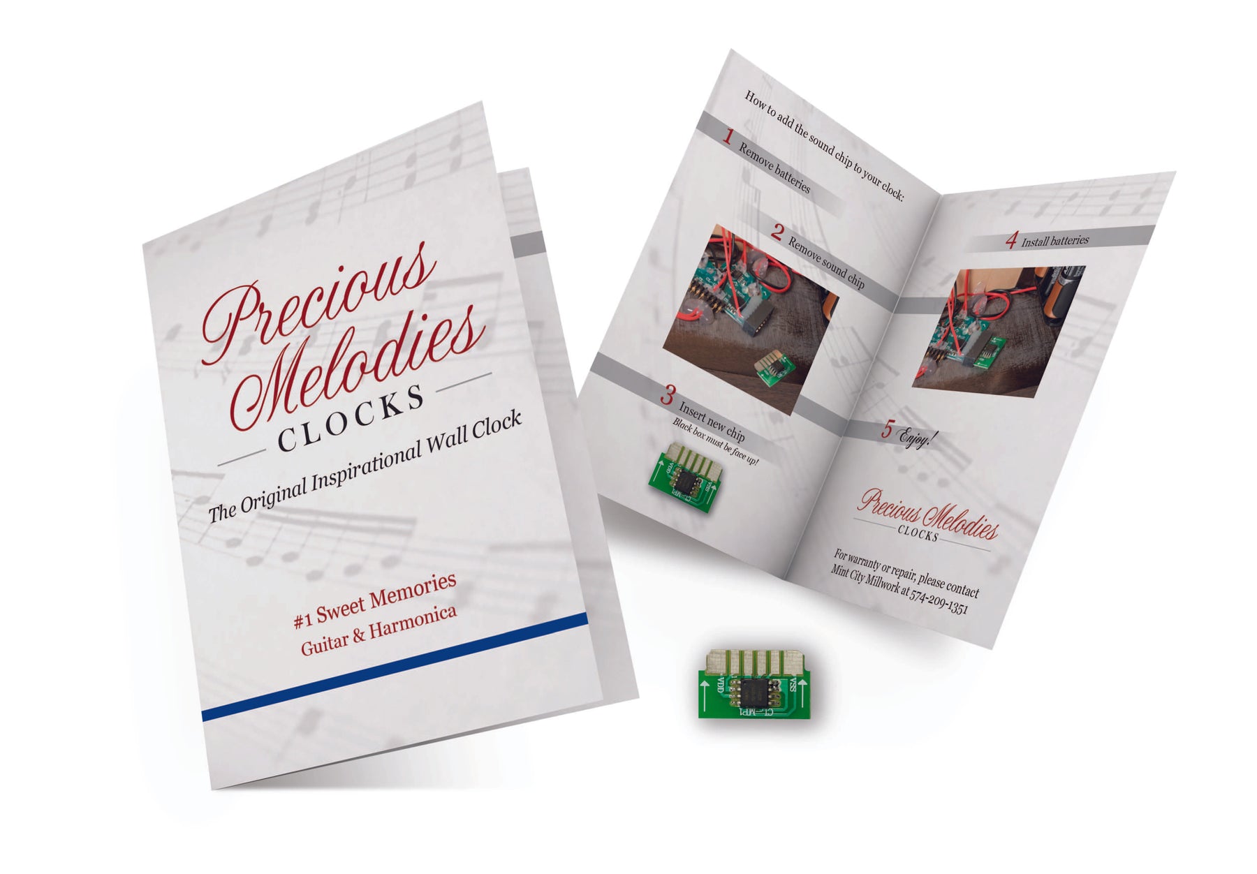 Our Friendship Series clocks offer beautiful chimes to enhance your decor. These locally recorded chimes are designed to fit perfectly inside our clocks, which are sold separately. If you'd like to hear a sample of the chimes, please call us at 574-404-8808.